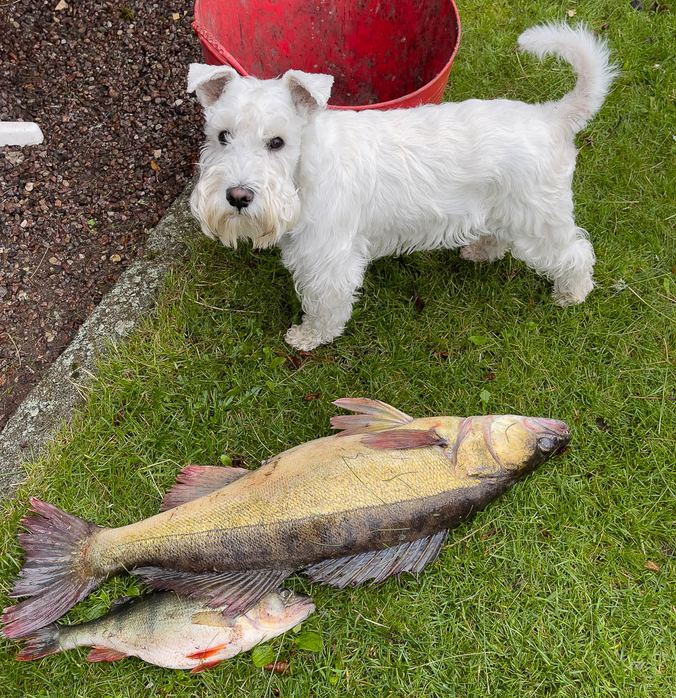 25 augusti. Mycket har kretsat kring vatten och fiske den sista tiden. Jag är aktiv i Stångåns Vattenråd och det har varit flera möten och andra aktiviteteter kring detta. Det börjar också bli dags att inleda höstens fiske. Gösen på bilden med sina knappa fem kilo fick knyta ihop vattenrådets arbete med fisket genom att bidra med provmaterial för analys av bland annat kvicksilver, PVC och PFAS. Abborren får bli morgondagens lunch.