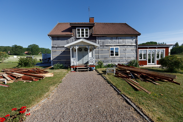 Nu har vi också kommit igång med årets byggprojekt i form av fasadbyte och även nya fönster. Med vita spröjs istället för bruna när man tittar ut så upplevs fönstren plötsligt större och ljusare trots att det är samma storlek.