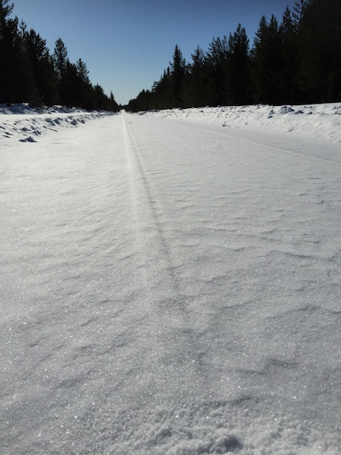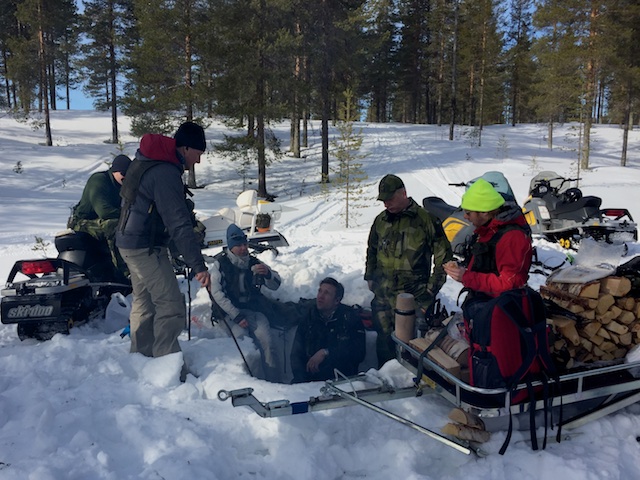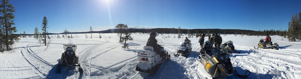 Ovanligt med frisk luft och vida vidder på mitt jobb. För det mesta är det kontor och konferenslokaler som gäller. Radioprov i Arvidsjaur i några dagar blev därför ett kul avbrott i vardagslunken. Efter litet förberedelser på regementet så genomfördes arbetet med skoter som färdmedel. Två hela dagar med skoter, radiomätningar och korvlunch ute i skogen gjorde att man somnade gott på hotellet. Jag fick prova på att köra skoter på de flesta ställen - banvallen till inlandsbanan, skoterleden, skogen och på sjöar och myrar. Otrolig tur med vädret gjorde att vi fick njuta av perfekta förhållanden med klarblå himmel och hög luft.