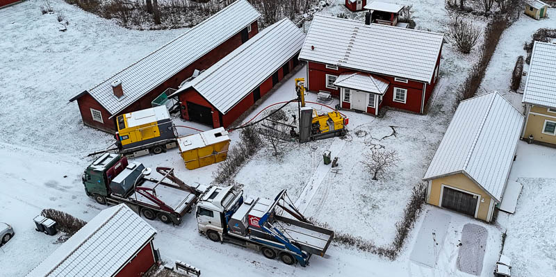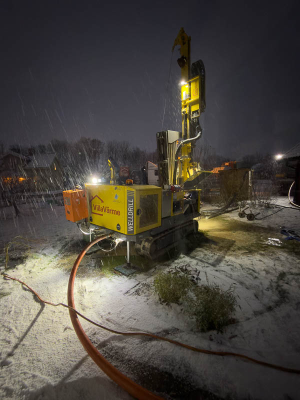 Den 19:e november. Borrning för bergvärme inleddes plötsligt och mycket snabbare än väntat. Firman ringde nästan direkt efter att jag meddelat att alla kablar och rör märkts ut. Vi hann inte förvarna grannarna så jag hoppas att störningen blir så liten som möjligt.