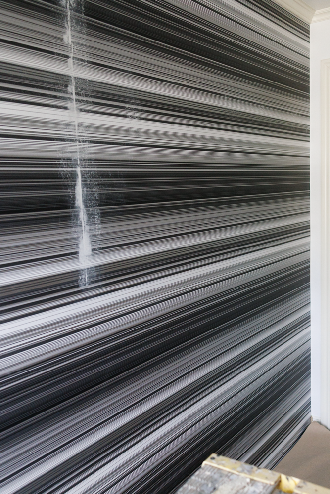 Juli - Innan tapetsering såg väggen i Marias rum ut så här.